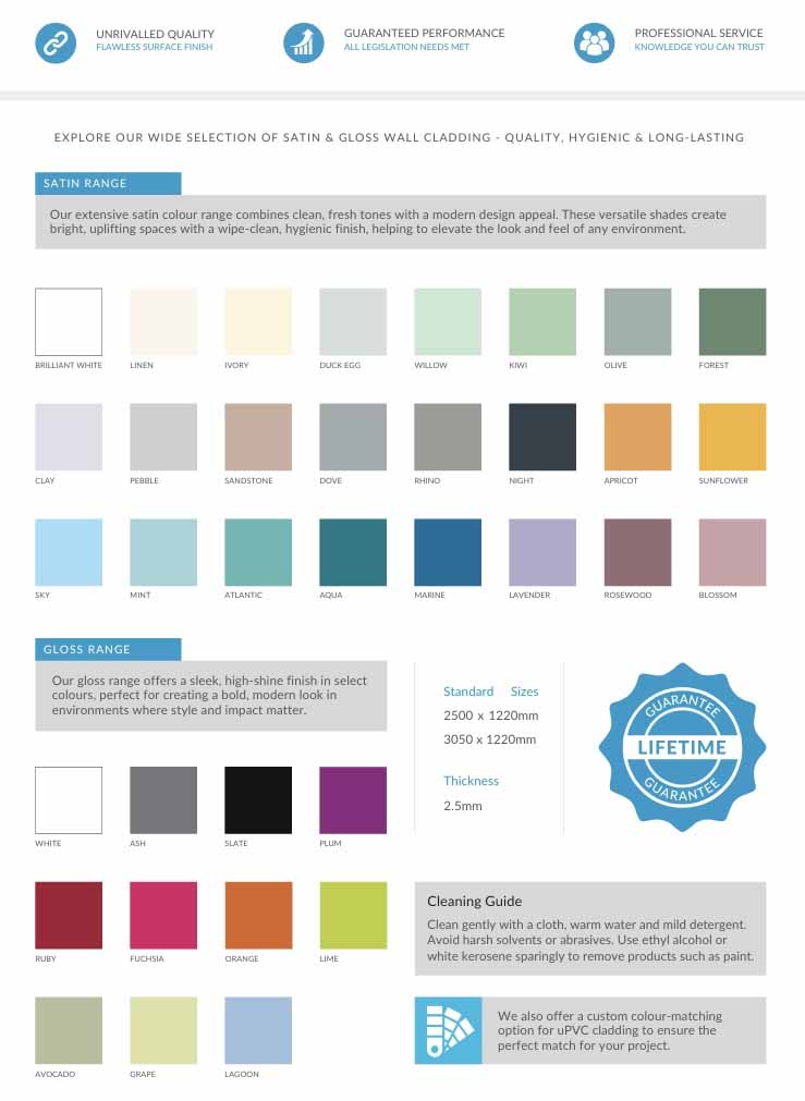 Hygienic Wall Cladding Limited offers a full range of Coloured Hygienic Wall Cladding solutions ideal for :